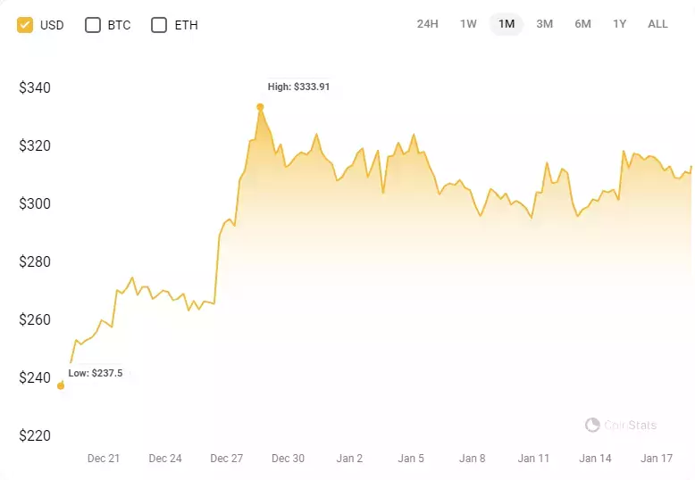 После нескольких месяцев снижения доли рынка декабрь стал поворотным моментом — платформа восстановила свои позиции в спотовой торговле криптовалютой. В дополнение к этой позитивной траектории Binance Coin, нативный токен биржи, вырос на 32% с конца ноября, опередив многие альткоины. В настоящее время он торгуется на уровне $311,95 (данные CoinStats).