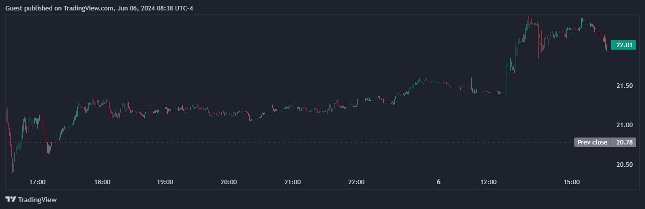 На фоне новости курс акций Robinhood подскочил на 4%. На премаркете эта позиция торгуется по $22: