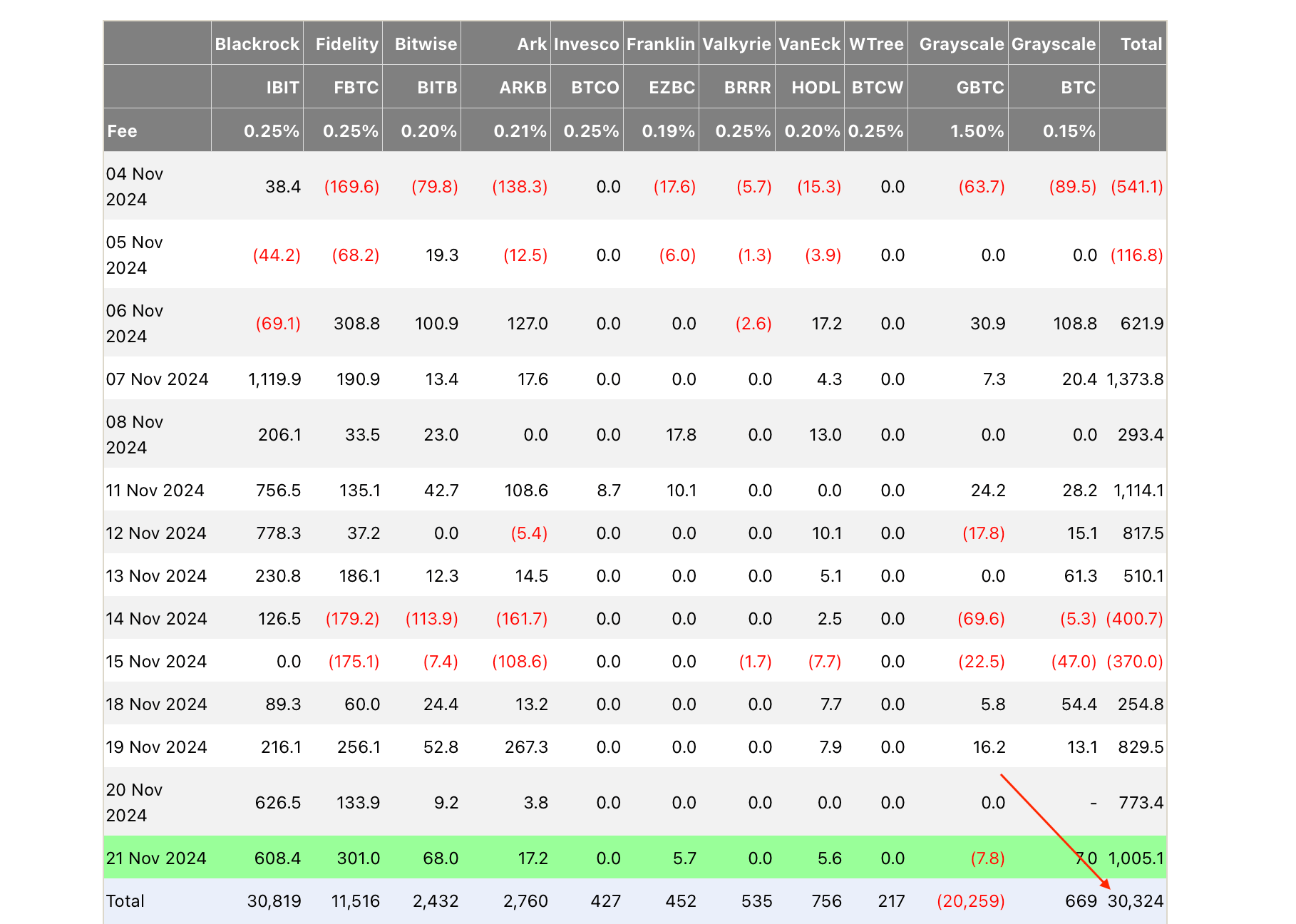 Спотовые ETF на Биткоин продолжают выдавать отличные результаты. За последние сутки чистый приток капитала в такие инструменты превысил отметку в миллиард долларов.