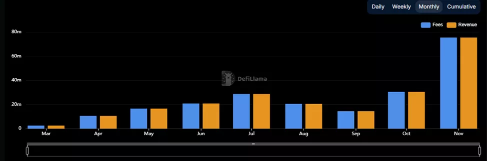 В ноябре месячные сборы Pump.fun достигли рекордных $75,4 млн.