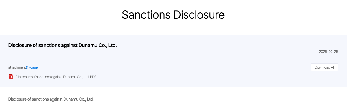 Раскрытие информации о санкциях FIU в отношении Dunamu, материнской компании Upbit. Источник: FIU