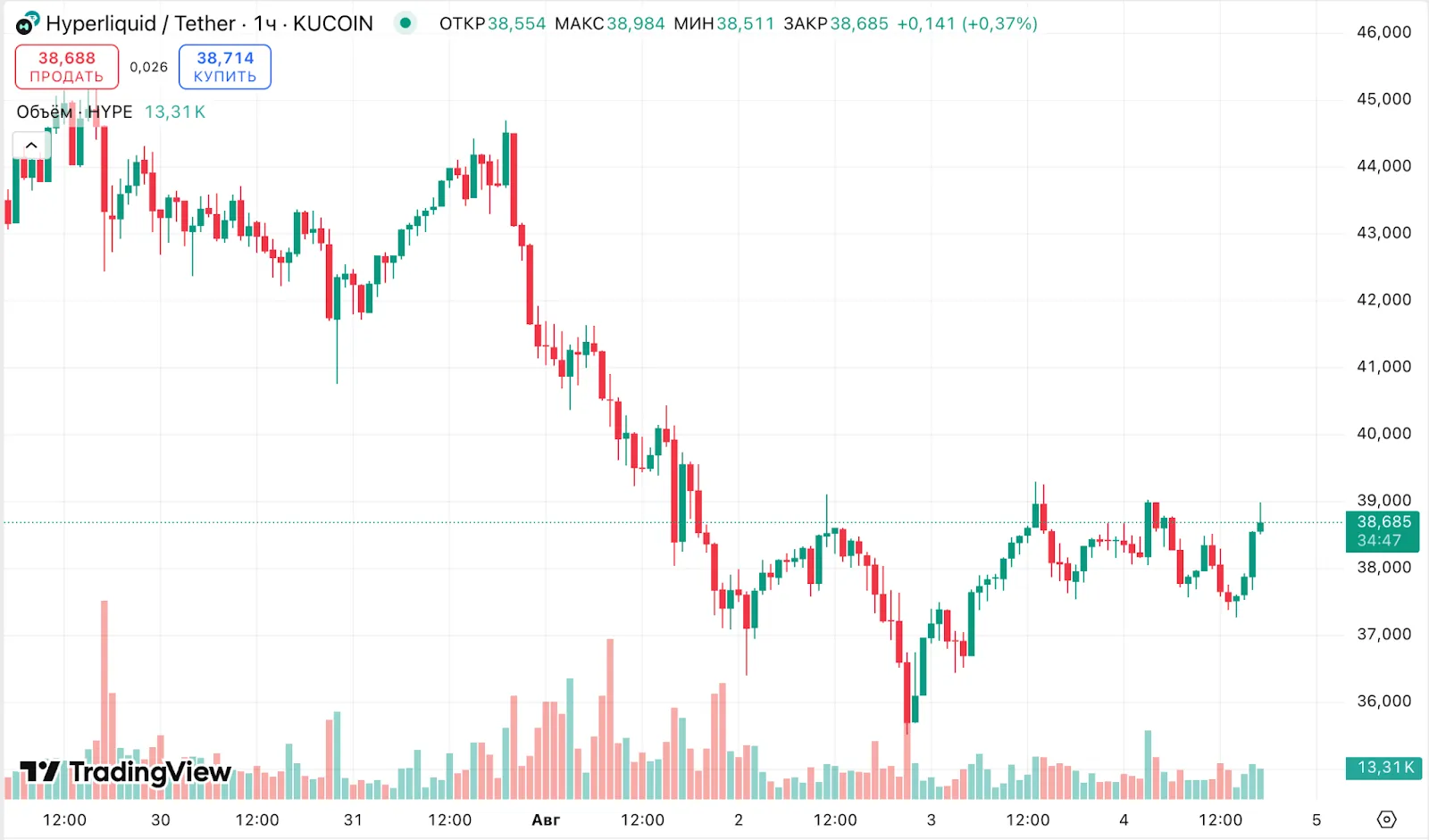 На фоне новости нативный токен платформы — HYPE — подорожал на 2,8%, согласно CoinGecko. На момент написания криптоактив торгуется по $38,6.
