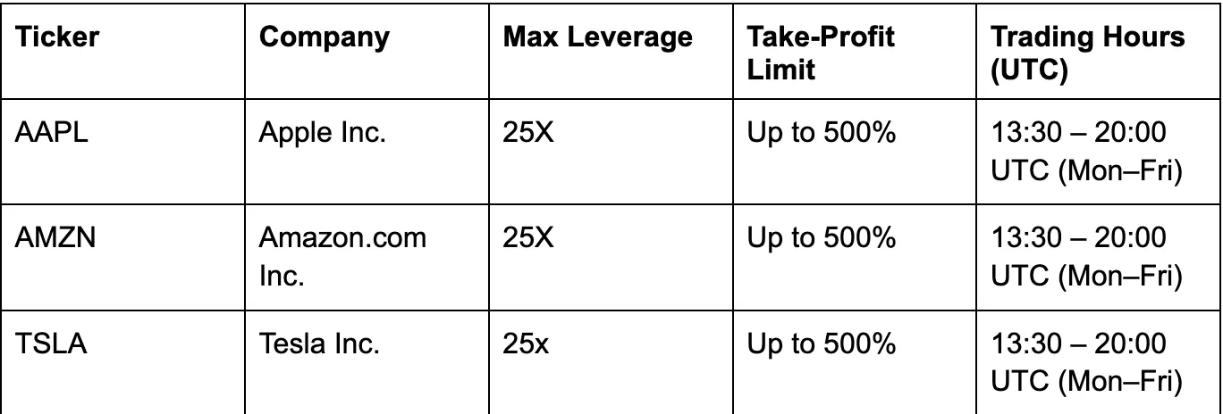 Контракты на AAPL, AMZN и TSLA отслеживают котировки ценных бумаг на традиционных рынках, но их торговля ограничена стандартными биржевыми сессиями. Крипто- и форекс-пары вроде BTCUSD, ETHUSD, BNBUSD, EURUSD и GBPUSD доступны для сделок круглосуточно.