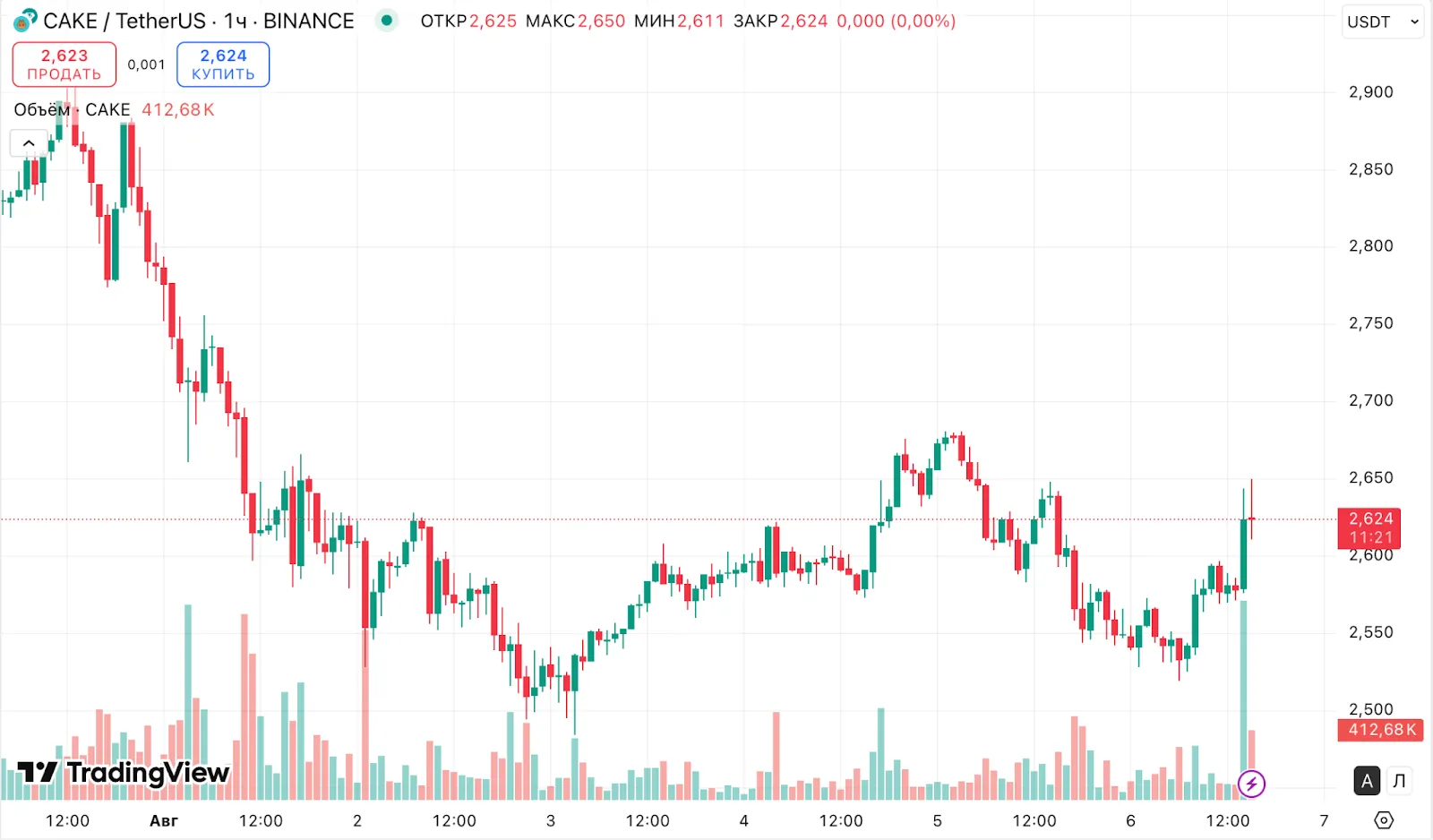 Нативный токен платформы — CAKE — почти не отреагировал на новость о добавлении новых инструментов. За последние сутки его цена поднялась на 0,5%, согласно CoinGecko.