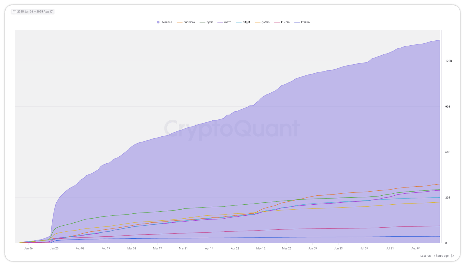 Совокупный объем торговли недавно размещенными токенами на Binance составил $133 млрд с начала 2025 года. Об этом свидетельствуют данные аналитической платформы CryptoQuant.