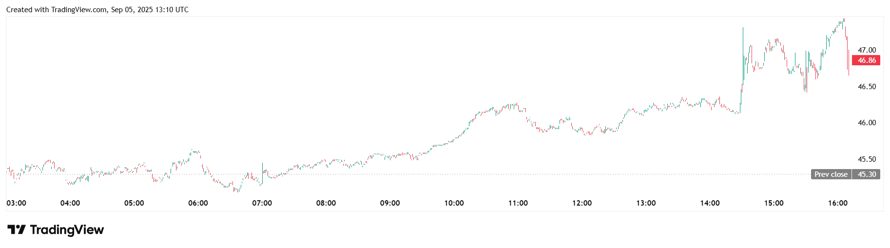 Токен HYPE отреагировал на новость умеренным ростом. На суточном чарте он составляет 3,4% с учетом небольшого отката после локального пика: