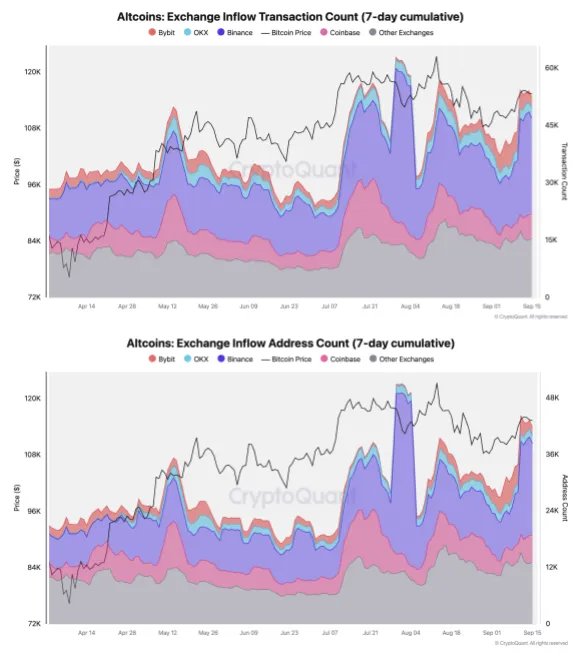 Исследование также фиксирует рост депозитов альткоинов на биржах: