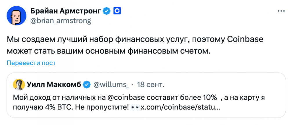 «Да, мы хотим стать криптосуперприложением и предоставлять все виды финансовых услуг», — сказал Армстронг.