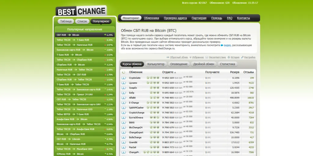 Обменники подходят для разовых покупок до 100 000 рублей — для регулярных операций и снижения затрат лучше использовать биржу. Чтобы выбрать обменник с лучшим курсом, проще всего зайти на агрегатор вроде BestChange: он сравнивает предложения более чем 600 сервисов.