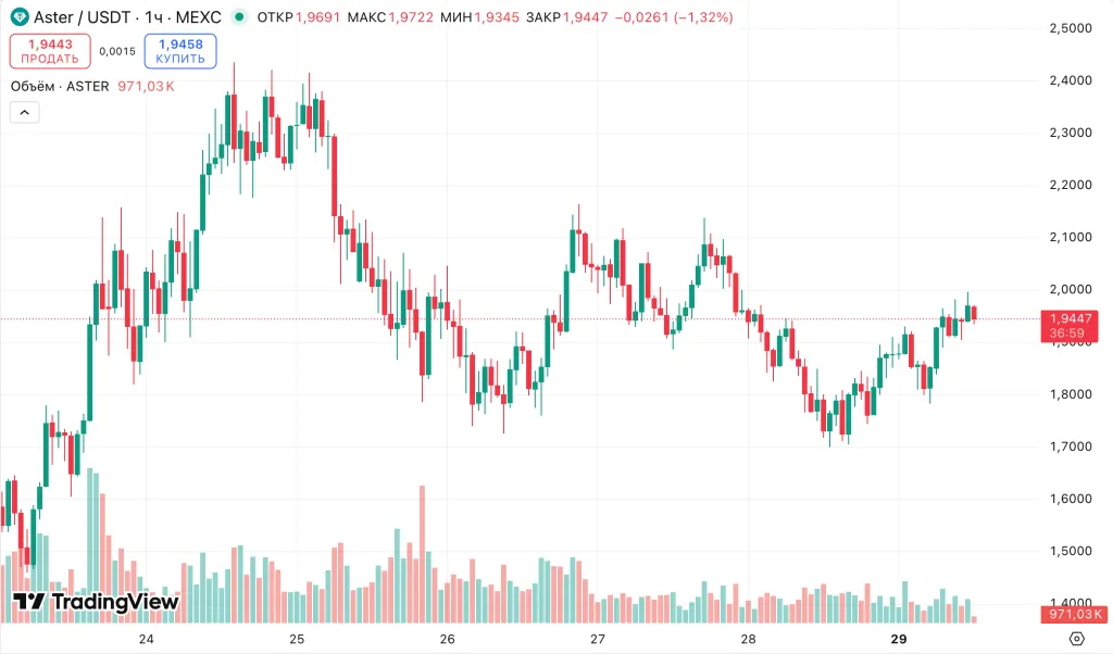 С момента появления токен ASTER остается в топе трендов на CoinGecko. Менее чем за две недели его цена выросла почти на 2000% — с $0,09 до $1,94.