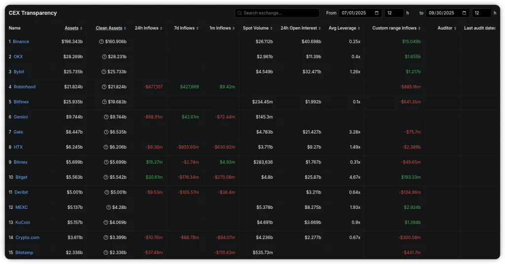 По данным аналитической платформы DeFi Llama, Binance стала лидером по притоку капитала на CEX в третьем квартале 2025 года с показателем $15 млрд.