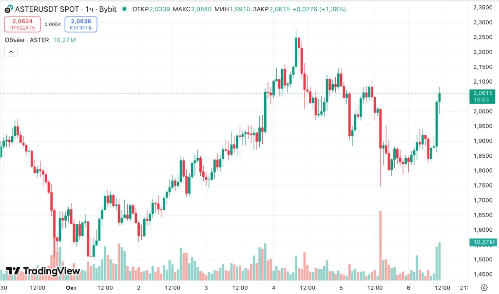Позитивно на курсе сказался анонс Binance. Биржа объявила о листинге ASTER на спотовом рынке 6 октября.