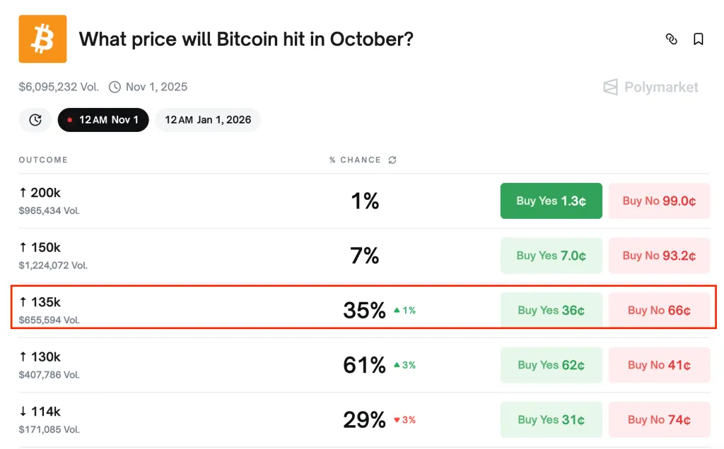 Сейчас в разделе платформы, который посвящен прогнозам цены биткоина в октябре, наиболее вероятным сценарием считается достижение отметки $130 000. В этот исход верит 61% пользователей. Объем ставок оценивается в $655 594.