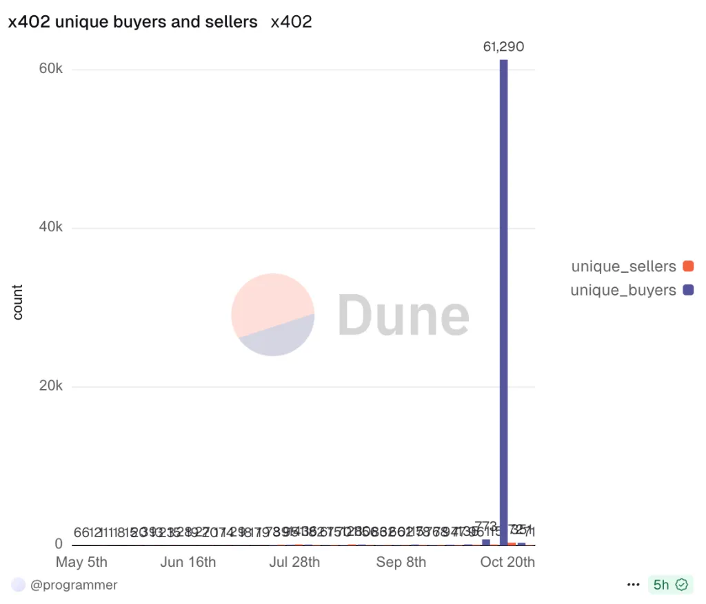 Количество уникальных покупателей x402-активов достигло 61 290, а продавцов — 372.