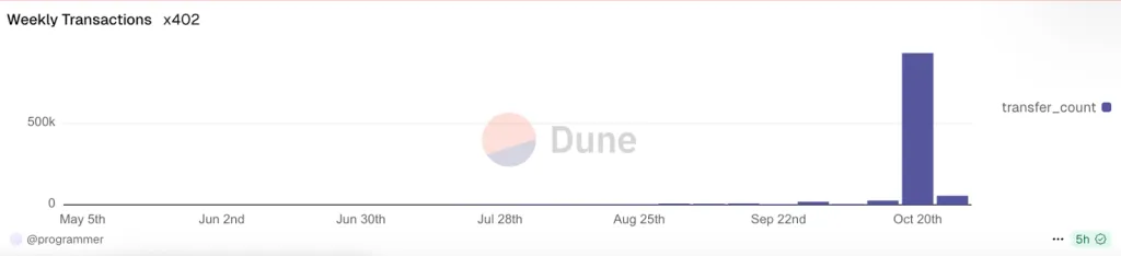 С 20 по 26 октября обработано рекордное число операций — 932 440 на сумму $913 888. Для сравнения, за весь сентябрь показатель составил 46 574.