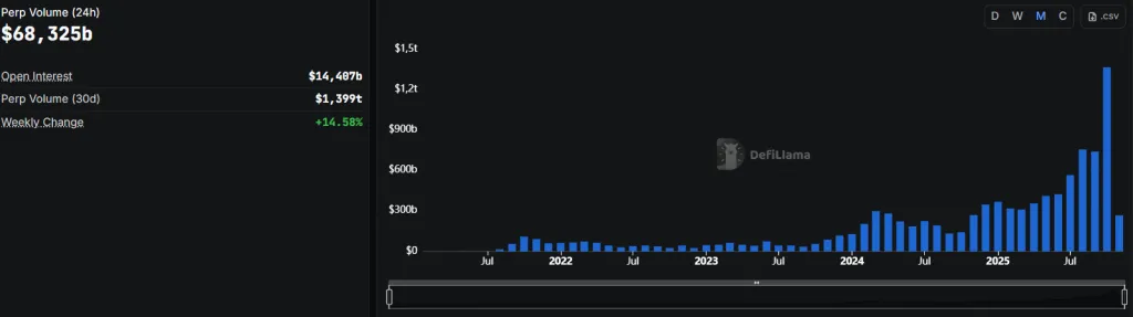 Основной вклад внесли платформы Hyperliquid, Lighter, Aster, EdgeX, Pacifica и ApeX.