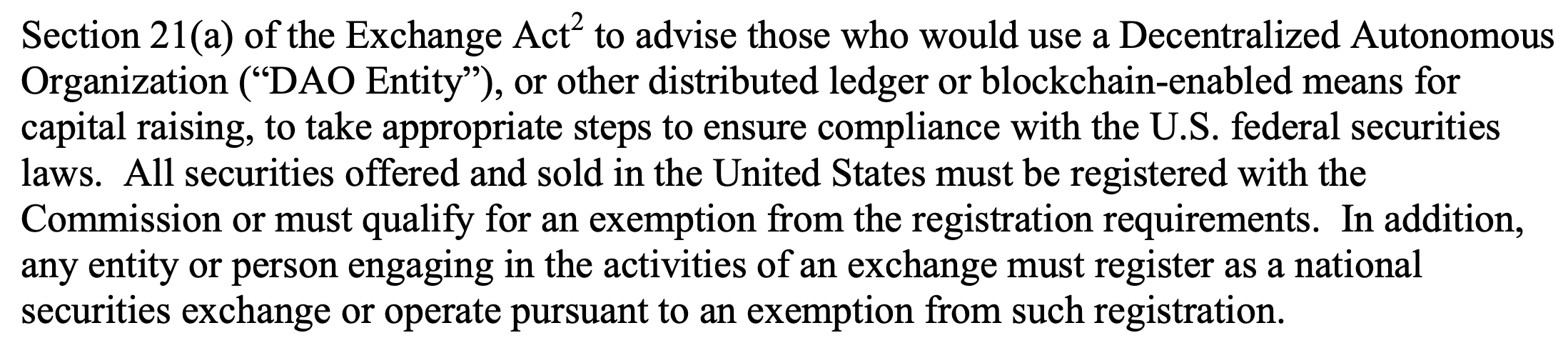 В отчете SEC по DAO за 2017 год указывалось, что некоторые предложения токенов соответствуют определению ценных бумаг по тесту Хоуи. Источник: SEC.gov