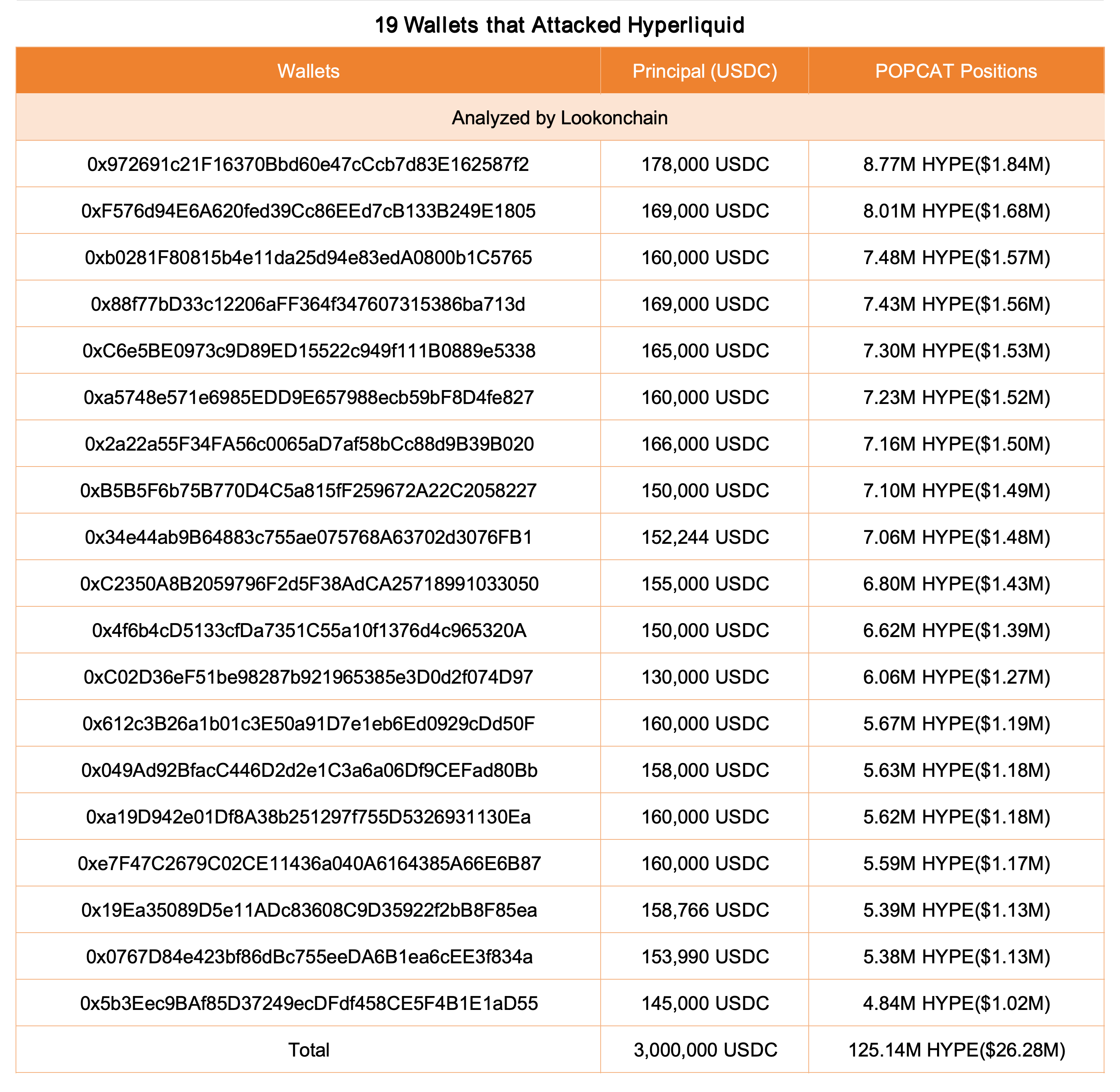Когда распределение средств завершилось, все 19 адресов внесли деньги на Hyperliquid и почти одновременно открыли длинные позиции по HYPE. В сумме позиции достигли 125,14M HYPE, что соответствовало примерно $26,28 млн.
