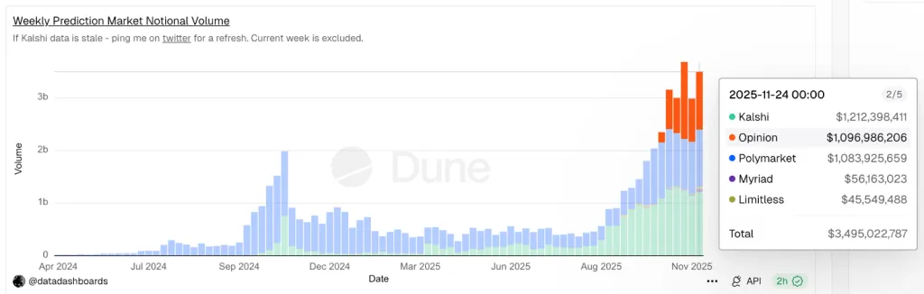 В ноябре совокупный оборот Kalshi и Polymarket приблизился к $10 млрд — максимуму за все время существования этих платформ.