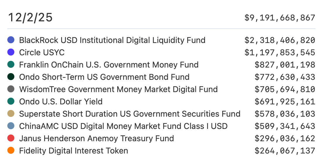 Топ‑фонды токенизированных казначейских обязательств. Источник: RWA.xyz