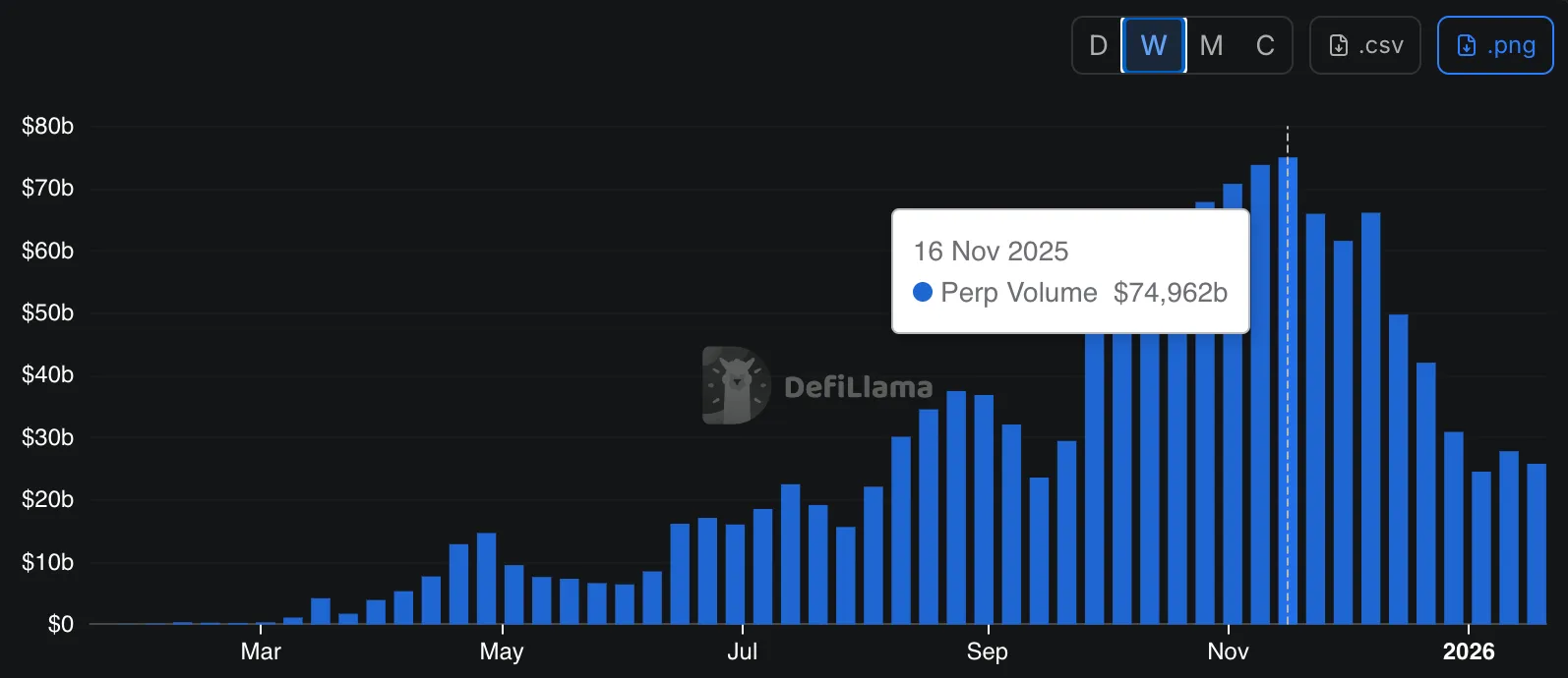 По данным экспертов, за последнюю неделю объем торгов на Lighter составил $25,3 млрд. Для сравнения, на пике в середине ноября показатель достигал $74,9 млрд.