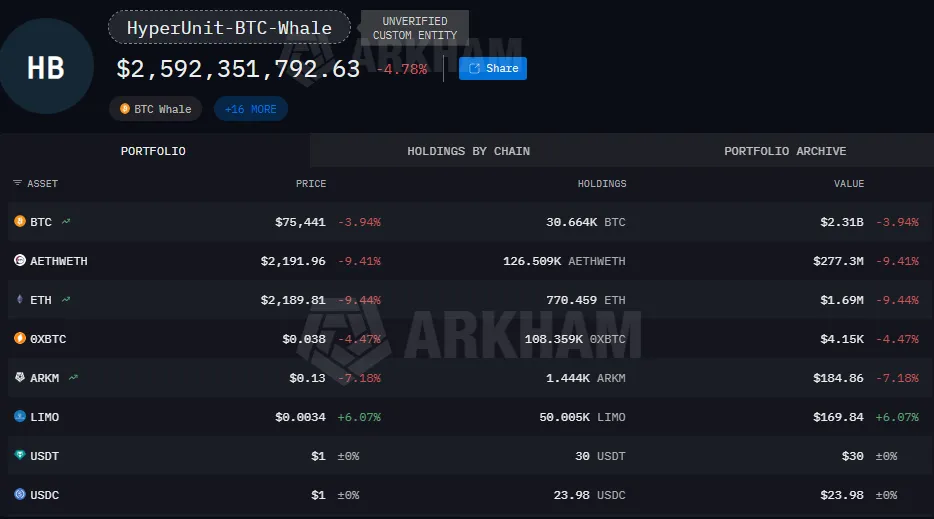 Ликвидация на Hyperliquid не разорила кита: по данным Arkham, на других его кошельках остаются активы на $2,5 млрд.