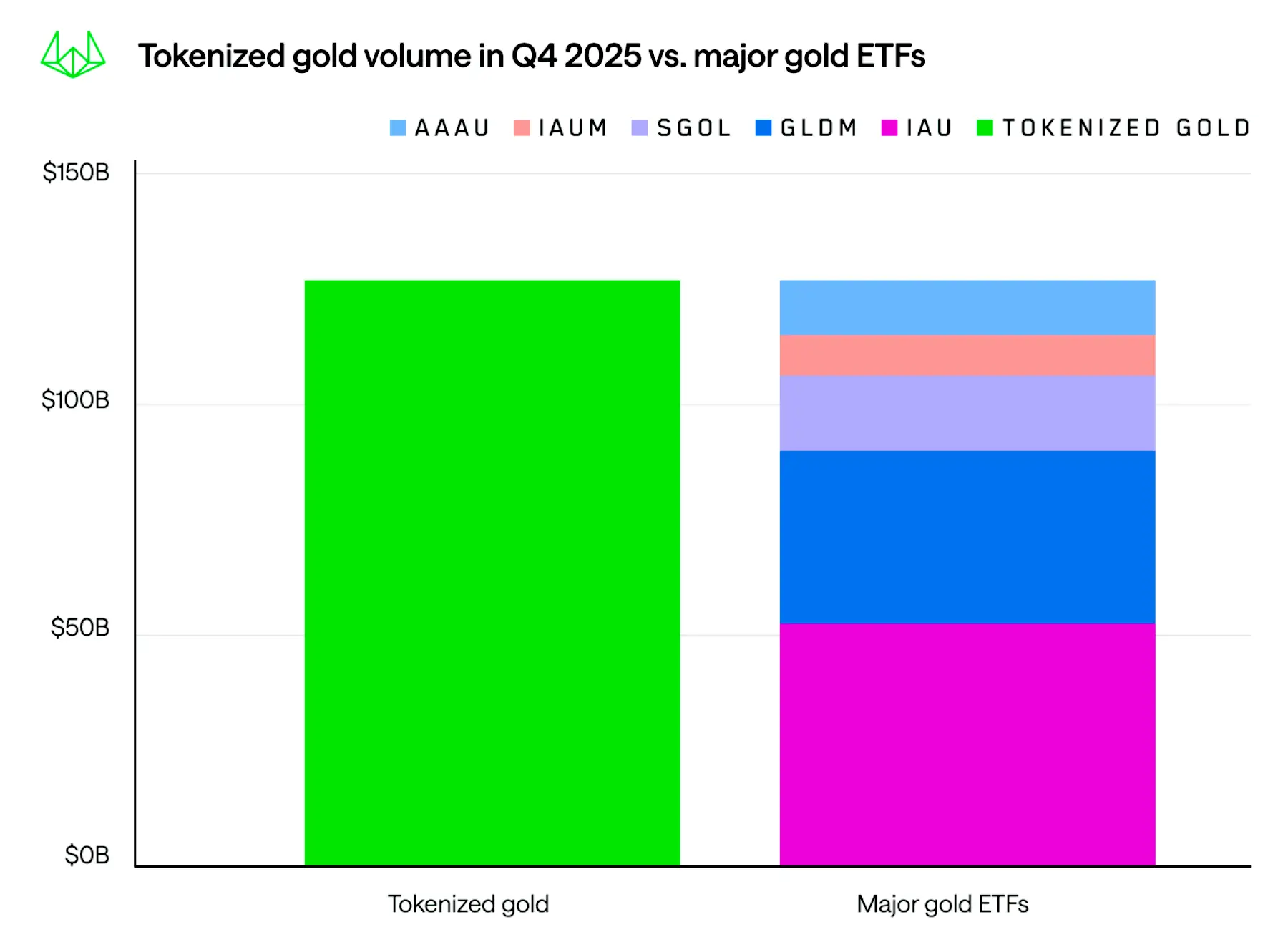 Расширение происходит в тот момент, когда объем торгов токенизированным золотом впервые превысил показатели пяти крупных золотых ETF. Только за IV квартал 2025 года он достиг $126 млрд, сообщила компания.