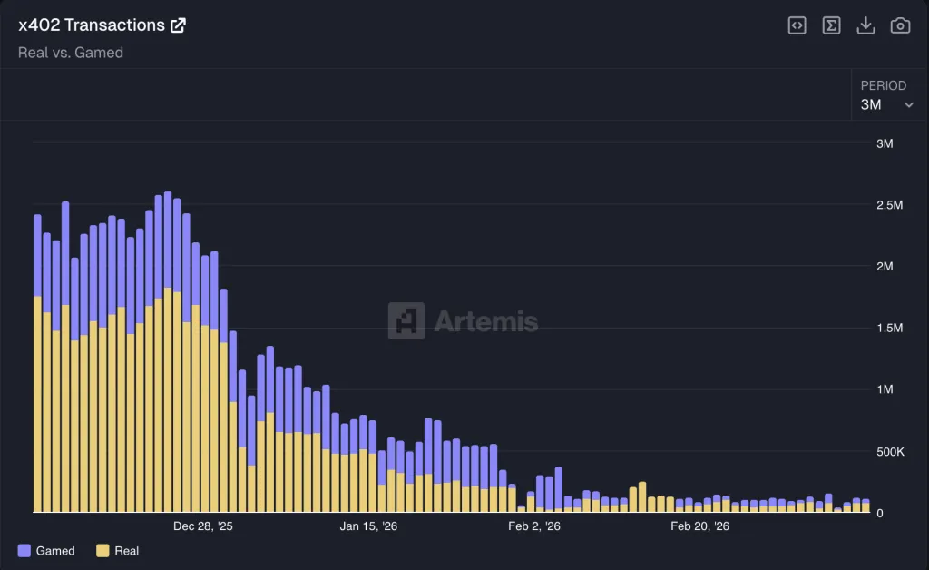 Ранее агентство сообщило, что в период с 5 февраля по 7 марта 2026 года автоматизированные системы провели транзакции на $24 млн. Авторы материала сослались на статистику платформы x402.org.