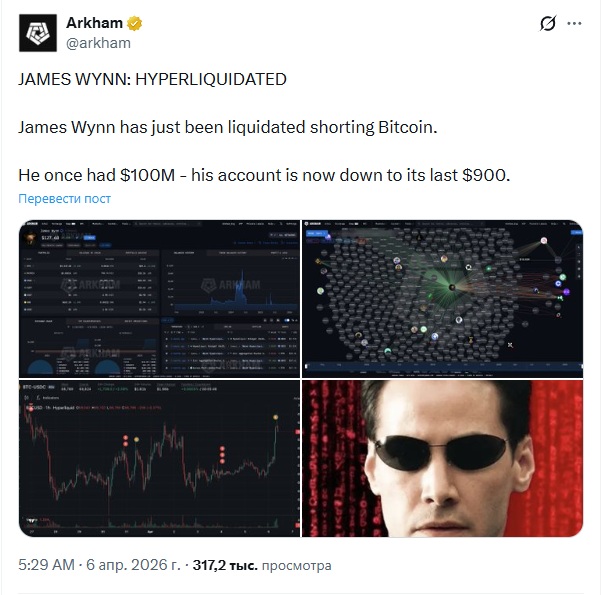 Ликвидация произошла на децентрализованной бирже Hyperliquid, где Уинн открыл короткую позицию с высоким кредитным плечом в расчёте на снижение цены биткоина. Однако внезапный рост, начавшийся в воскресенье 5 апреля, заставил систему ликвидации платформы закрыть его позицию.