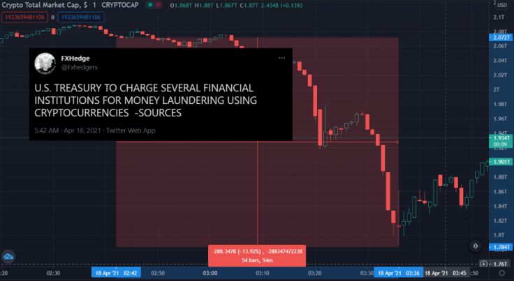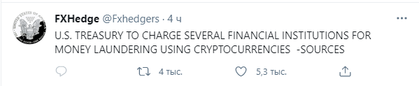 Неподтверждённое сообщение о том, что Казначейство США обвиняет несколько финансовых организаций в отмывании денег в криптовалюте, вызвало хаос на рынке криптовалют.