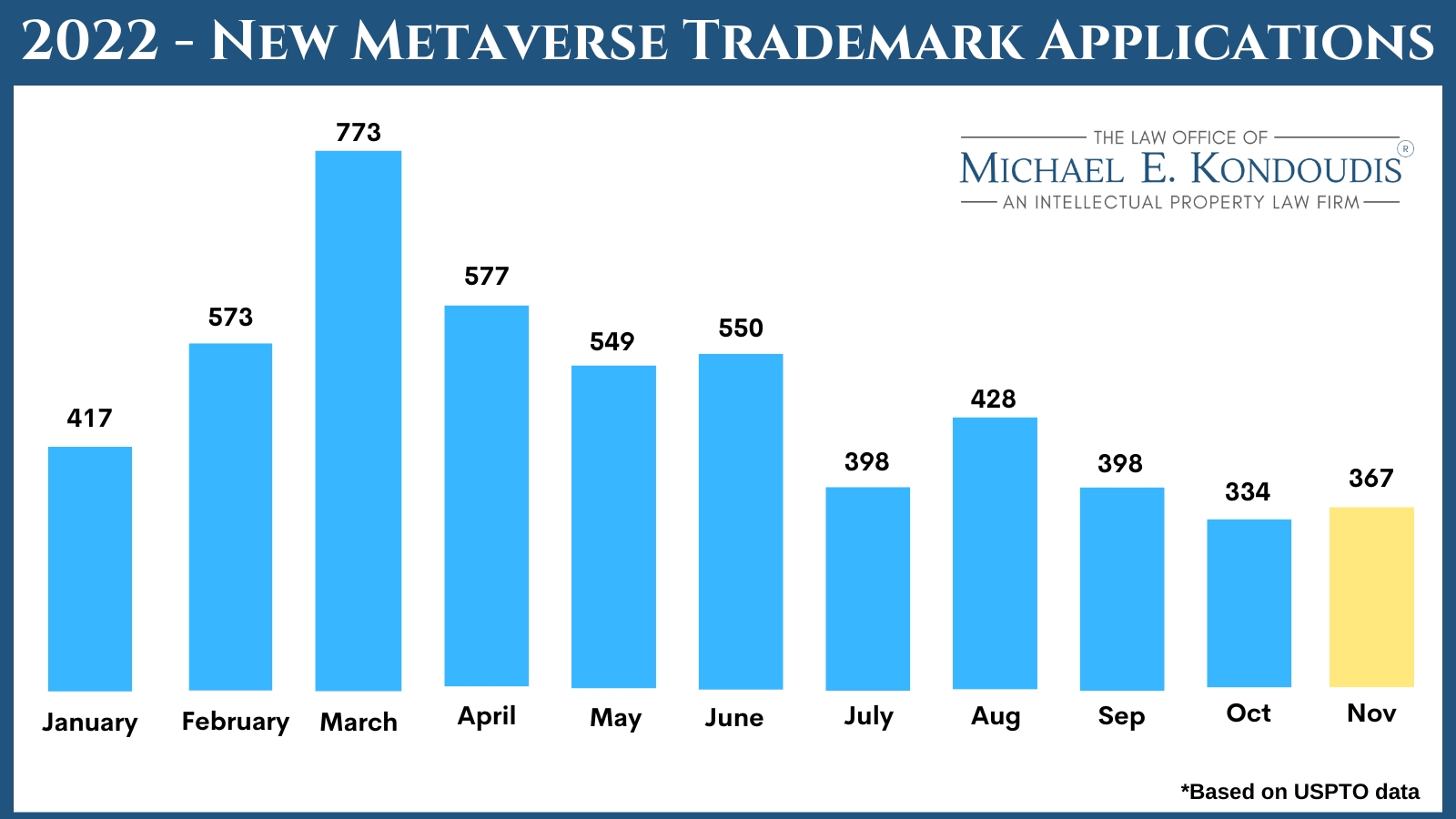 Всего в ноябре в США было подано 367 заявок на регистрацию товарных знаков в метавселенной и сфере виртуальных товаров/услуг.