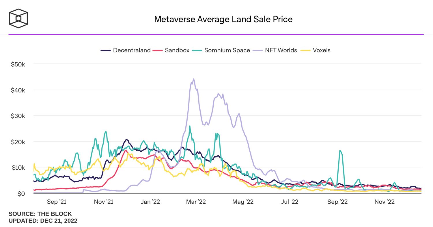 Согласно информационной панели The Block, с начала года цены на землю в метавселенной также упали на 90%.