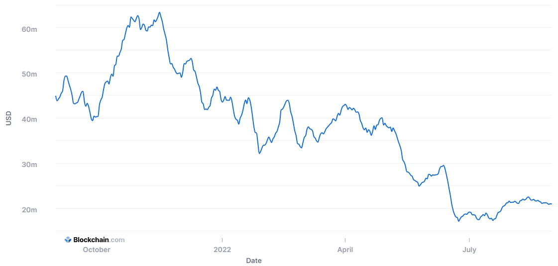 Суточный доход майнеров (среднее за 7 дней). Данные: Blockchain.com.