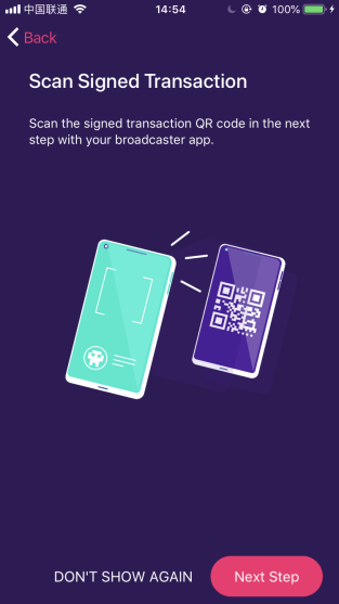 Например, для перевода нужно сначала сделать запрос на перевод в AirGap Wallet, затем подписать транзакцию в Vault, а уже потом сканировать подтверждённую транзакцию внутри Wallet и подтвердить свою личность вводом пароля или отпечатка пальцев.
