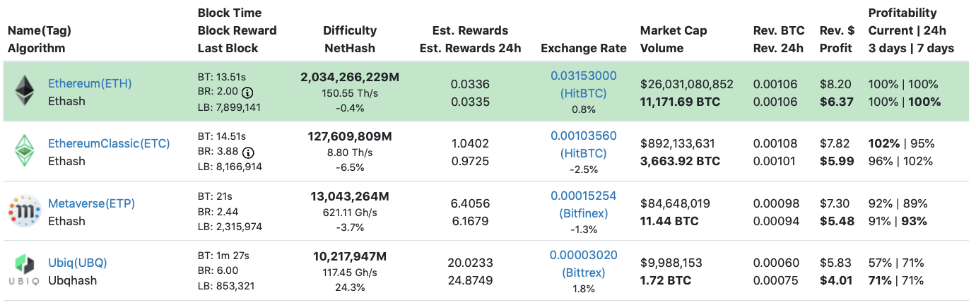 Получаем 5,54 доллара прибыли за день работы. К слову, это практически сравнимо с результатом Ethereum Classic. Периодически выгода добычи Aeternity обгоняет ETC и даже соперничает с ETH.