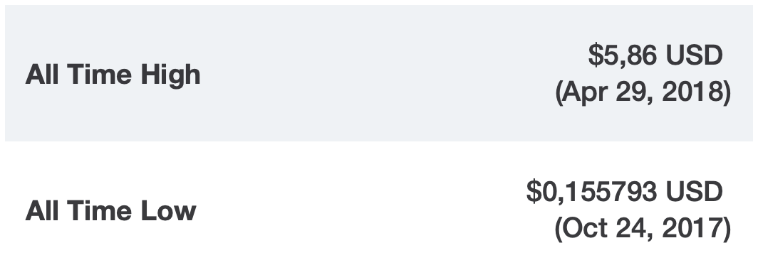 Монета с тикером AE находится в шестой десятке мирового рейтинга. Максимальный курс зафиксировали 29 апреля 2018 года — 5,86 доллара.