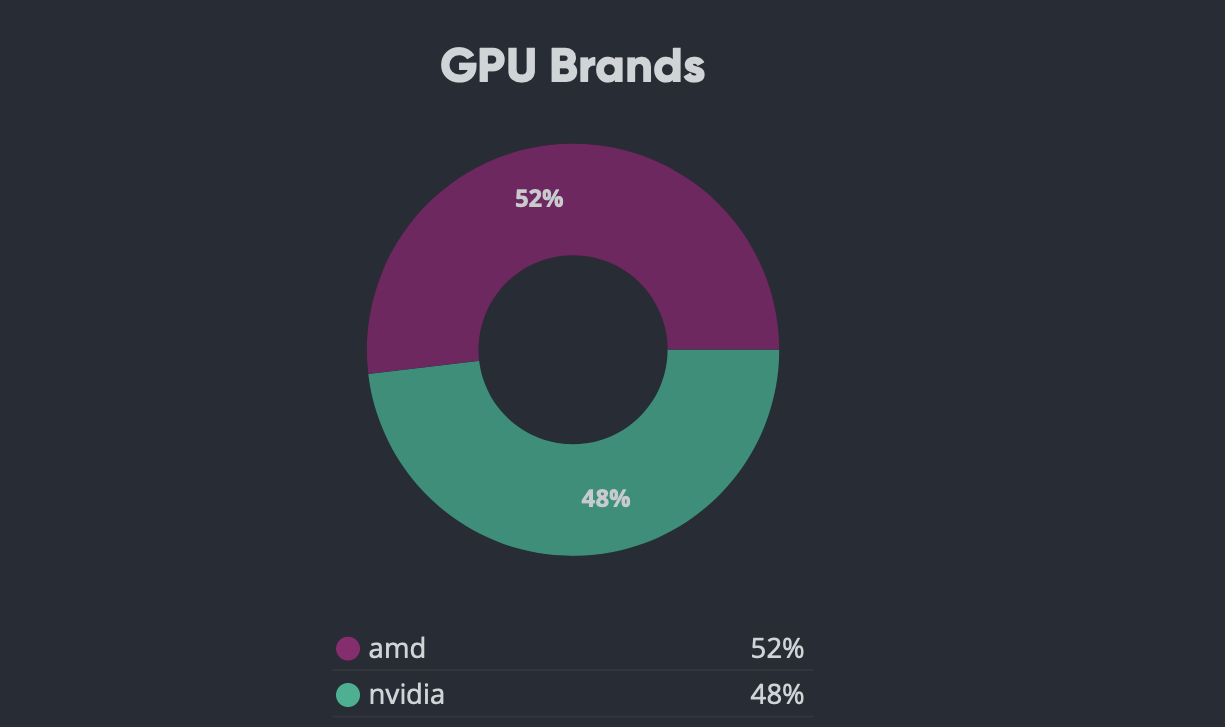 Идём на страницу статистики и сразу же узнаём ответ на главный вопрос — карты какого производителя доминируют на рынке? Ответ явно порадует поклонников AMD.