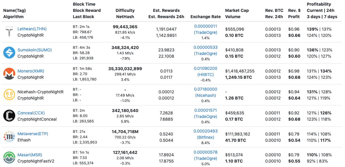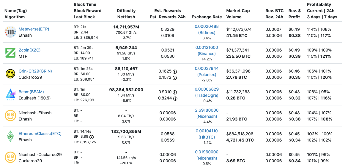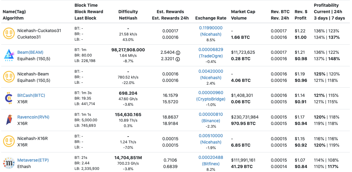 Что майнить — Zcoin, Beam, Grin, Ethereum, Ravencoin, Ethereum Classic, Metaverse, Expanse.