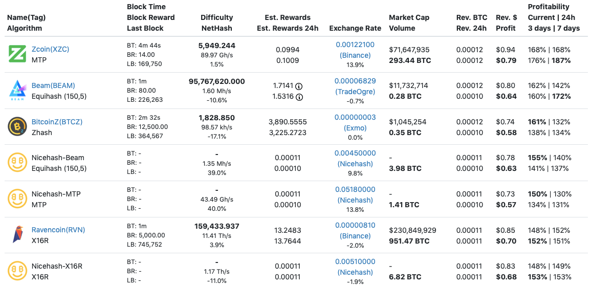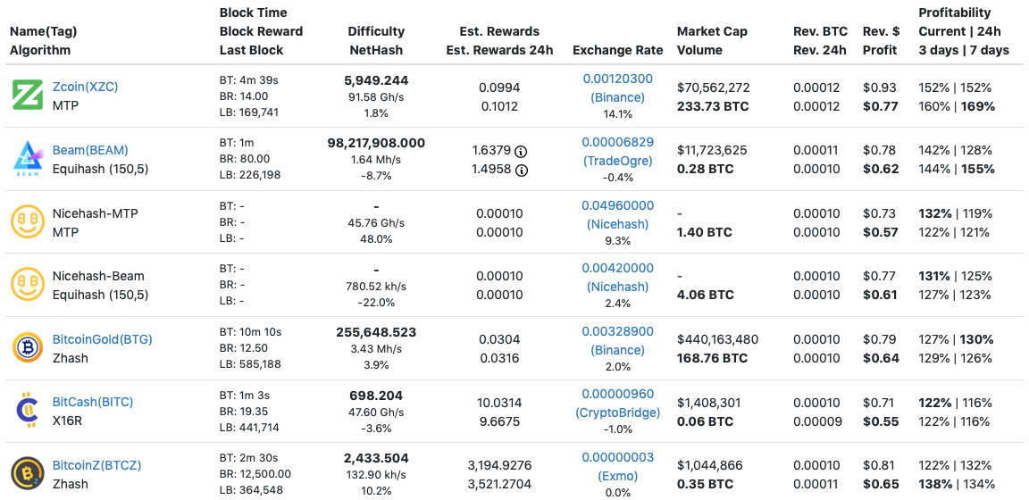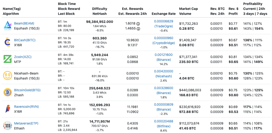Что майнить — Zcoin, Beam, ZelCash, Ethereum, GRIN, Ravencoin, Ethereum Classic, Metaverse, Expanse.