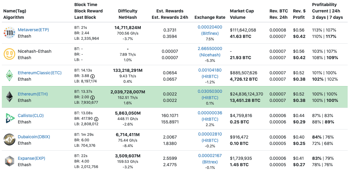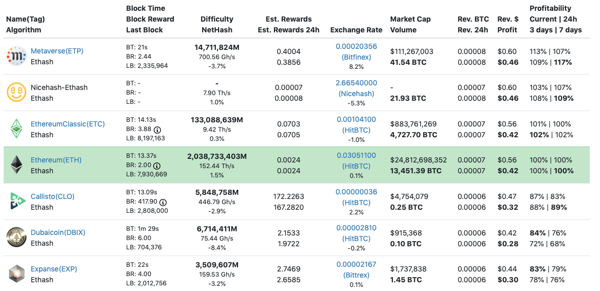Что майнить — Metaverse, Ethereum, Ethereum Classic, Expanse.