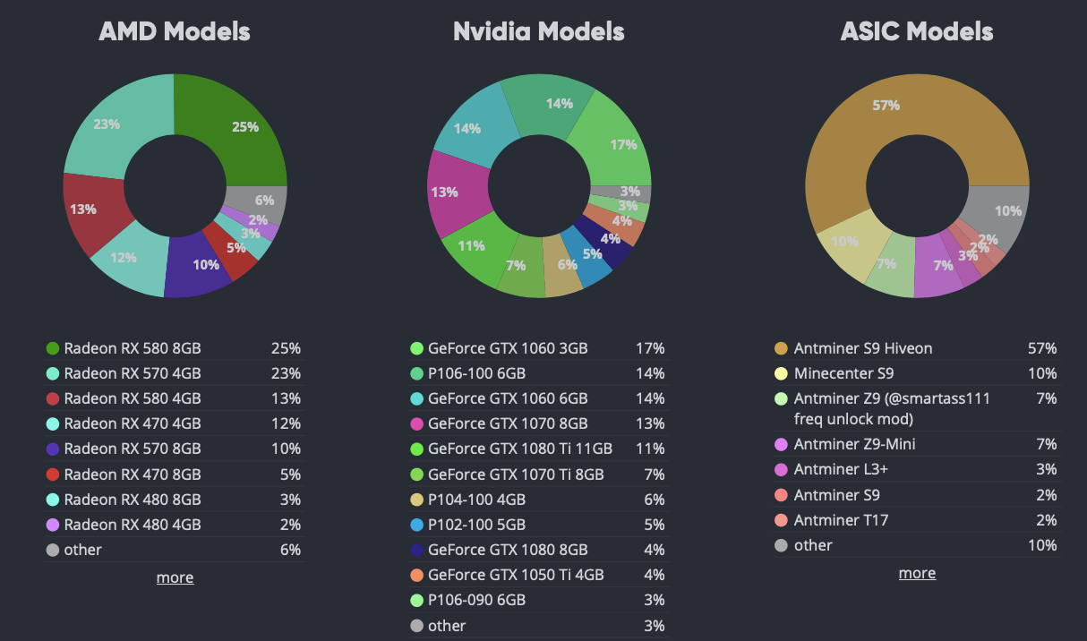 Узнать предпочтения майнеров всего мира в отношении видеокарт можно, причём для этого не придётся проводить перепись. Получить представление о популярности разных GPU поможет сайт майнинг-платформы Hive OS. Если ещё не знакомы с ней, читайте наш обзор. После прочтения рекомендуем ознакомиться с инструкцией по разгону видеокарт на этой платформе.