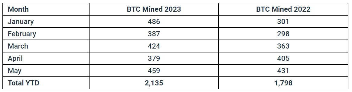 С начала же года компания добыла 2135 BTC, что на 18,74% больше, чем 1798 BTC, зарегистрированные за тот же период прошлого года.