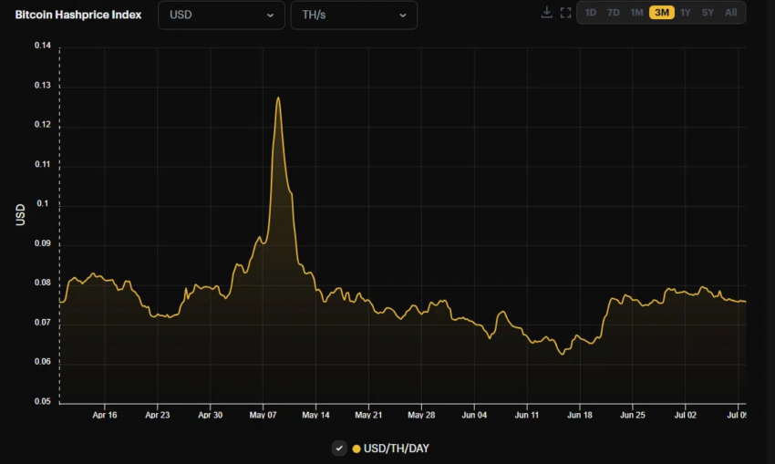 Давление на майнеров биткоина усилится из-за падения стоимости хэшрейта. Этот показатель сейчас составляет $0,075 за TH/день и отражает прибыль, которую могут получить майнеры. В начале мая, когда рынок увлекся майнингом ординалов, стоимость хэшрейта выросла до $0,127, что привело к сильной перегрузке сети.