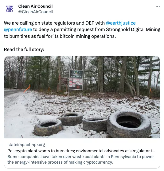 «Поскольку [Panther Creek] применяет производимую электроэнергию для добычи криптовалют, а не продает ее коммунальным службам, объект должен повторно получить разрешение в качестве мусоросжигательного завода, к которому будут предъявляться повышенные требования по мониторингу загрязнения воздуха», — заявил представитель Совета по чистому воздуху Рассел Зербов.