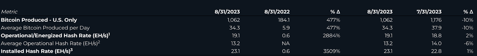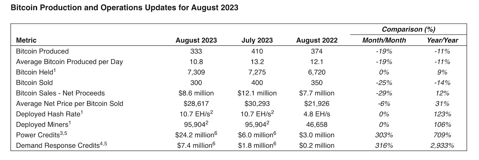 В августе Marathon Digital Holdings сгенерировала 1072 BTC — на 9% меньше показателя за июль, но более чем в пять раз больше результатов за последний месяц 2022 года.