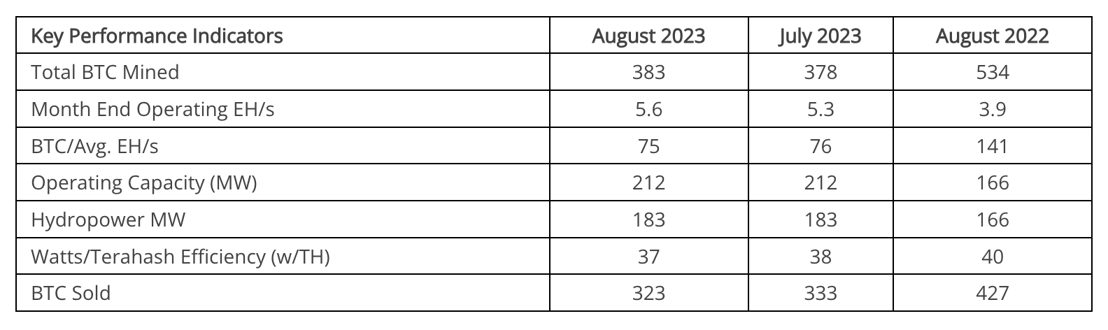 За последний месяц лета Bitfarms намайнила 383 BTC, что на 1,3% больше июльских результатов. На конец августа хешрейт достиг 5,6 EH/s благодаря подключению новых устройств и дальнейшей оптимизации парка.