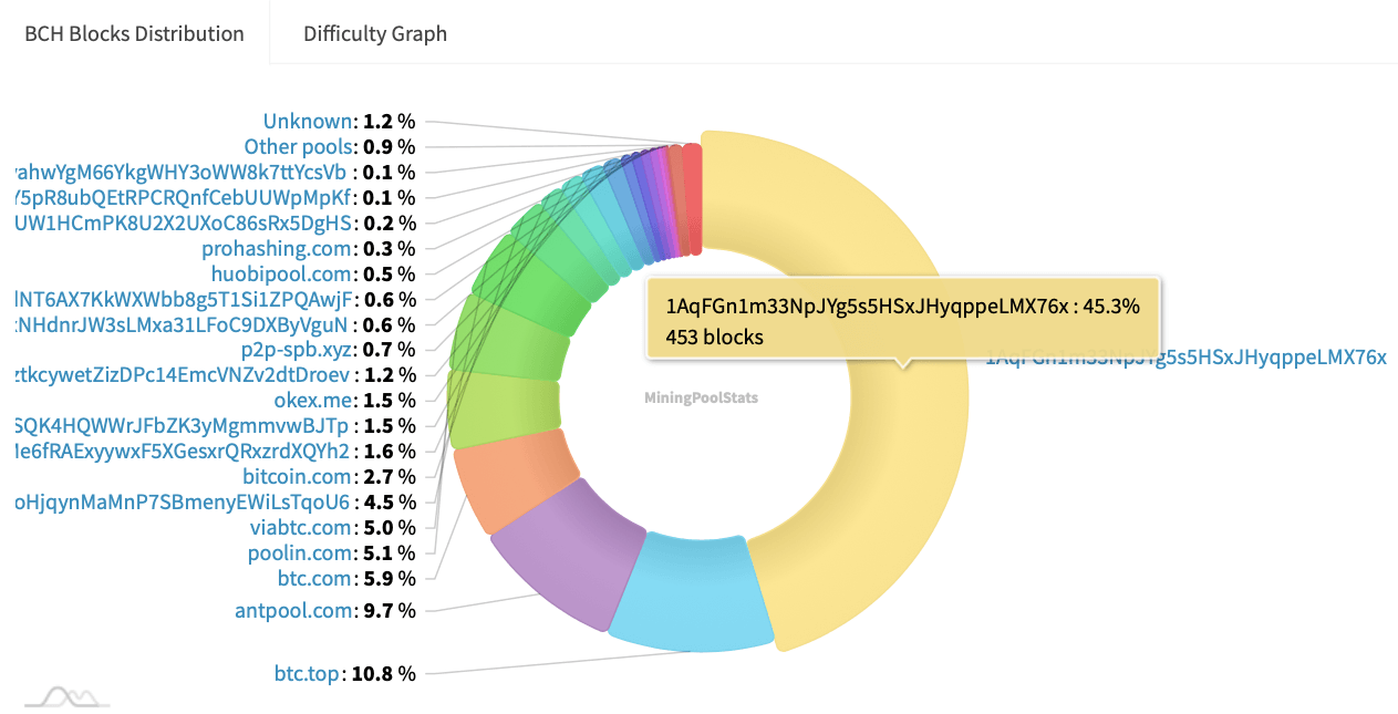 Распределение хешрейта сети BCH по майнинг-пулам. Источник: miningpoolstats.stream