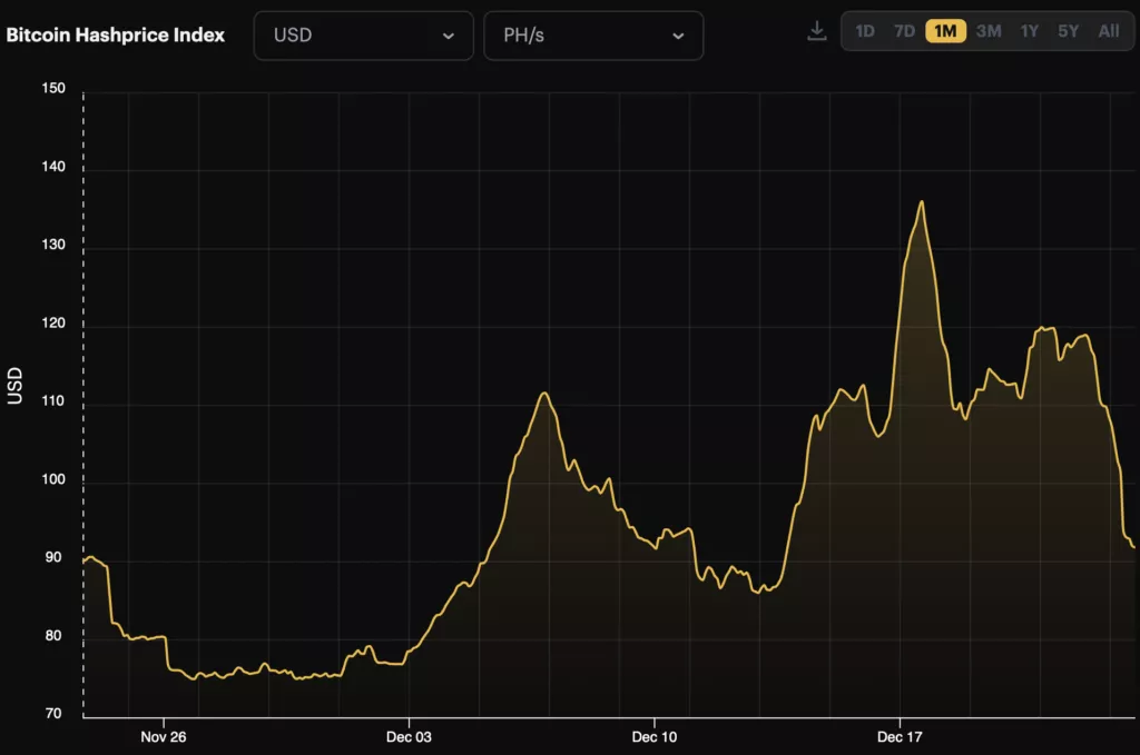 По данным Hashrate Index, хешпрайс составляет $92 за PH.