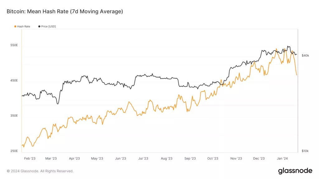 Согласно Glassnode, 20 января сглаженный 7-дневной скользящей средней показатель достигал 469 EH/s. На момент написания он составляет 471 EH/s.