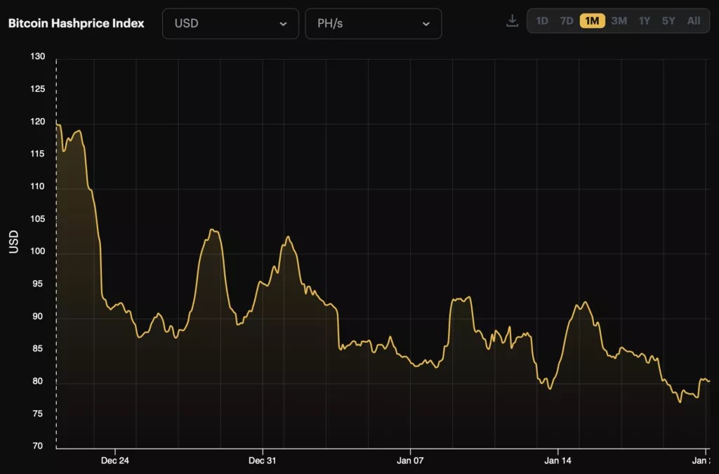 По данным Hashrate Index, хешпрайс составляет $80,4 за PH.
